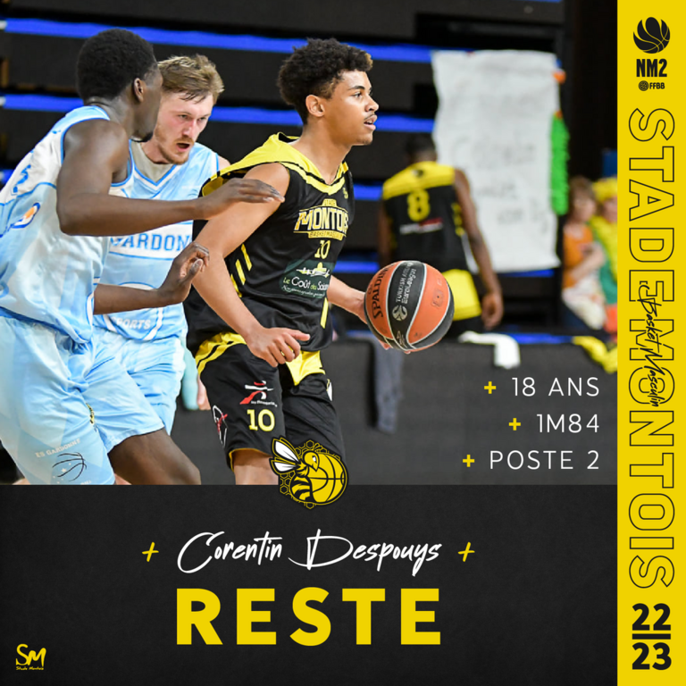 Tout en gagnant en expérience avec notre équipe RM2 et plusieurs feuilles de match autour des 30 points, Corentin Despouys avait aussi glané quelques minutes par-ci par-là avec notre équipe fanion l'an dernier.